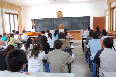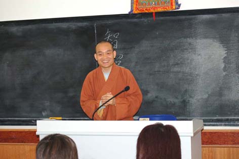 下午2时至5时,法辉法师、圆诚法师分别给同学们讲解《佛教心理学》和《佛教的科学观》,演讲结束后,同学们提出很多佛教的常识性问题,两位法师予以解答,受到同学们的欢迎。(圖/文:光德)