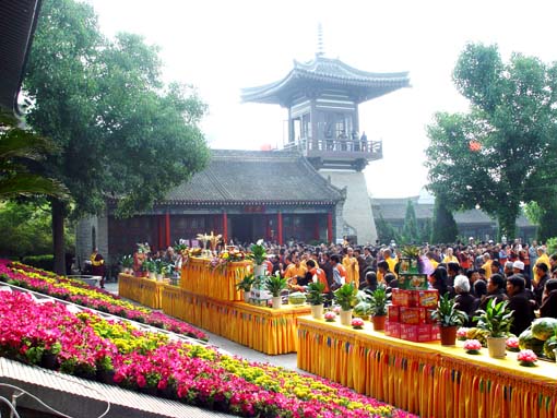 连日来,参加法门寺纪念释迦牟尼佛圣诞法会的信众与日俱增,