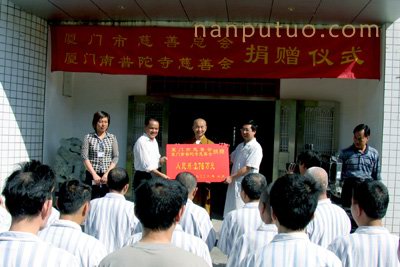 南普陀在线报道:5月19日上午,在“助残日”即将来临之际,受厦门南普陀寺慈善会会长圣辉法师的委托,常务副会长慧然法师代表圣辉法师慰问了厦门市南山精神病疗养院和凤南麻疯病村的患者,并向南山疗养院捐赠了电子粥罐、向凤南麻疯病村的麻疯病人捐赠了电热水器等生活用品,并发放了慰问金。此次慰问活动,是南普陀寺慈善会与厦门市慈善总会合作的慈善项目,南普陀寺慈善会共捐助善款2.38万元。
