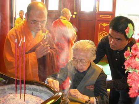 赵朴初夫人陈邦织女士拈香