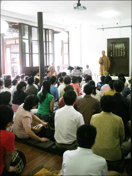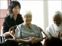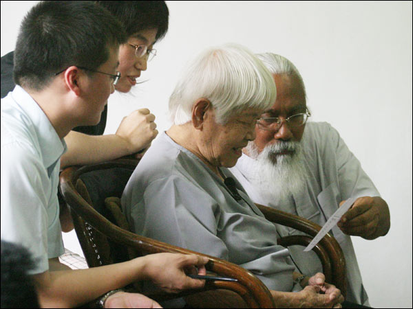 西园寺网站报道:5月28日下午,被誉为新加坡国宝的108岁老人——许哲居士一行来到西园寺。弘法部成峰法师等热情接待了老人一行,并邀请老人与青年学佛组学员进行了座谈,共同分享百年生命经验,分享真爱与慈悲。老人风趣、敏捷的回答,令般若堂内不时响起阵阵掌声和笑声。但更多的,是感动,是启迪,是思索。