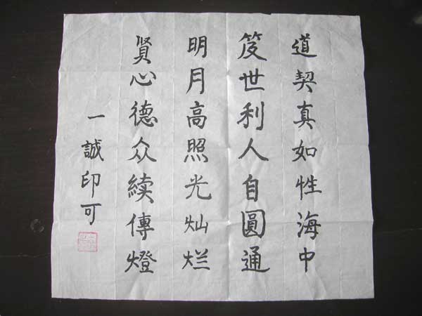 明贤法师是此次活动的大陆代表。他1993年出家于江西永修云居山真如寺,2000年随一诚长老来到江西佛学院任教。今年四月应邀参加此次西行活动。一诚长老一贯倡导“人心和善、家庭和睦、社会和谐、世界和平。”于此次西行活动前,为明贤法师题写了:“道契真如性海中,笈世利人自圆通;明月高照光灿烂,贤心德众续传灯”的诗偈饯行。
