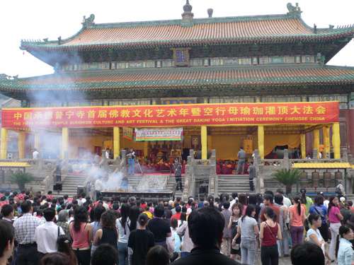 【大公报讯】记者李小聪、特约记者缪革新、何?君承德报道:承德普宁寺本月十九日举行了空行母瑜伽灌顶大法会,西藏三大寺之一的色拉寺钦则活佛主法。来自藏、蒙、京、津、沪等地的近三千名信众出席。