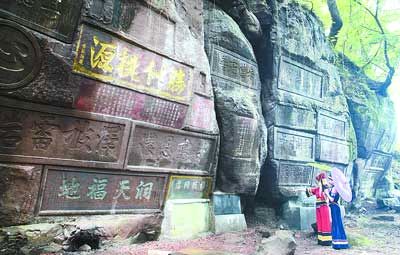 据文物专家初步考证,摩崖石刻多为清代作品,共有石刻上百幅。石刻规模之大,内容之丰富,艺术价值之高,在国内实属罕见。