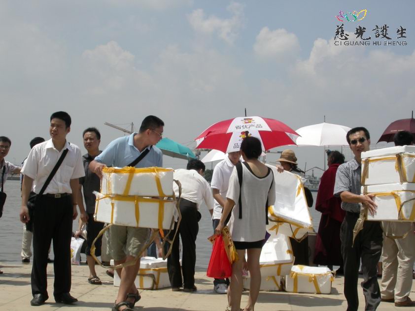 热俄多吉上师一到广州,跟弟子聊了一会,就拿出1000元来,说要放生,于是慈光顺应因缘,临时组织了这次放生.