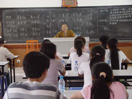 下午2时30分,佛学院圆诚法师、法辉法师在佛学院二楼讲堂以佛教的人生哲学和农大师生们探讨如何获得快乐的人生,如何缓解学业压力,调剂生活烦恼,认识世界等问题的方法,做了深入浅出、生动活泼的演讲,得到师生们的认可。