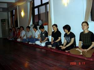 6月17日晚禅茶会会员们在居士禅堂坐禅 |