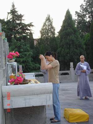 6月18日清晨明海法师亲临塔前指导供茶仪式准备工作 |
