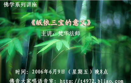 应佛音大家唱工作室礼请,梵华法师于6月9日(今晚)8点为网络佛友开示《皈依三宝的意义》,因缘殊胜,欢迎大家随喜听闻,同沾法益!