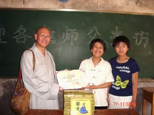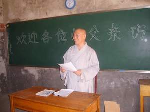 仁弘法师代表佛学院僧格养成班的师生们向孩子们赠送了国学经典诵读软件和数百元捐款,并发表讲话, 他说:“我们为了了解众生苦来到这里,为了培养慈悲心来到这里。作为出家人,只有了解众生的苦,才能产生出离心,才能增加慈悲心,才能坚固修道心。我们要把众生的苦难作为我们修行的增上源。来到这里,我们体验到常辉法师和社会各界人士的慈悲心,体验到到你们勇猛精进,把佛陀教诲落实到当下的精神,我们一定要把这种精神带回去。”