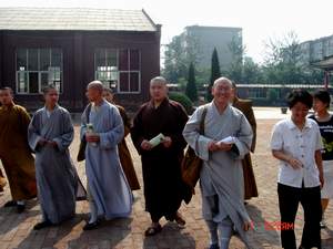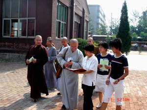 柏林禅寺网站报道:6 月17日上午,河北省佛学院僧格养成班一行八人在仁弘法师的带领下冒着摄氏 38 度的酷暑赴弘德家园看望失去了双亲的孩子们。弘德家园的王世宏老师早已和孩子们等候在门口,恭敬地向师父们合十行礼。