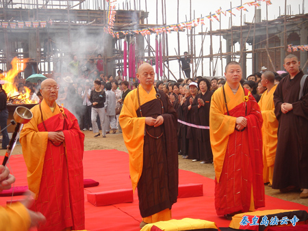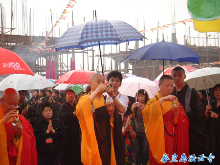 2006年6月25日河北秦皇岛市法云寺祥云围绕、梵唱悠扬,佛教四众弟子聚会一处隆重举行大雄宝殿上梁法会。
