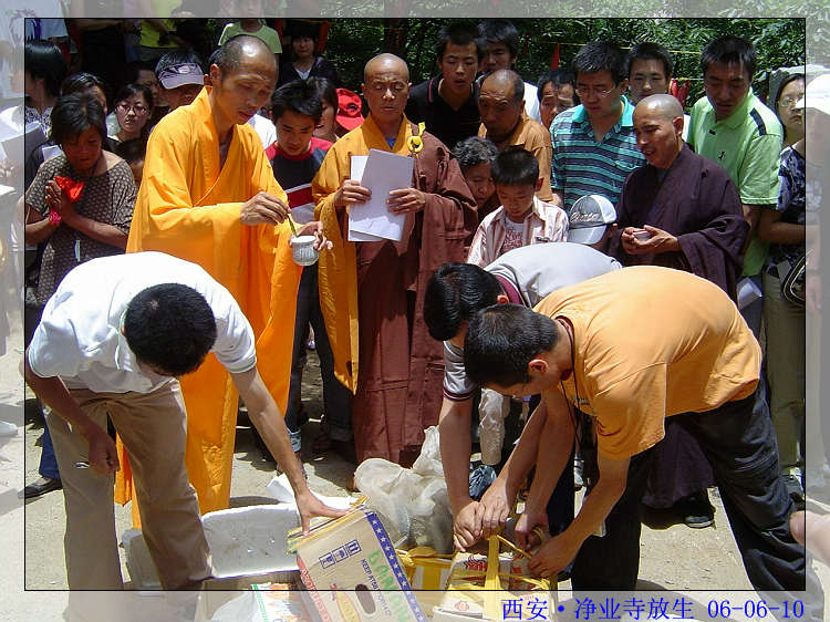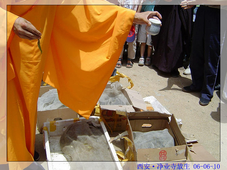 今天(2006-6-10,农历五月十五),怀着欢喜+期待+激动的心情,早早起来赶车子到西安市区,今天是要来参加西安修福修慧放生组的放生活动