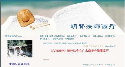 今年33岁的明贤法师19岁即剃度,他对记者说,在确定他为西行的僧人的20天前,他才知道这个消息。他说:“心即世界,心平和,世界才能平和;心和谐,世界才能和谐。”因此,他将怀着一个和尚的心情去西行。