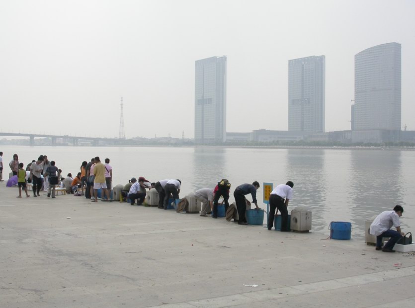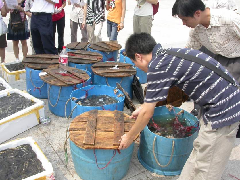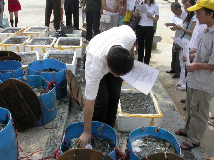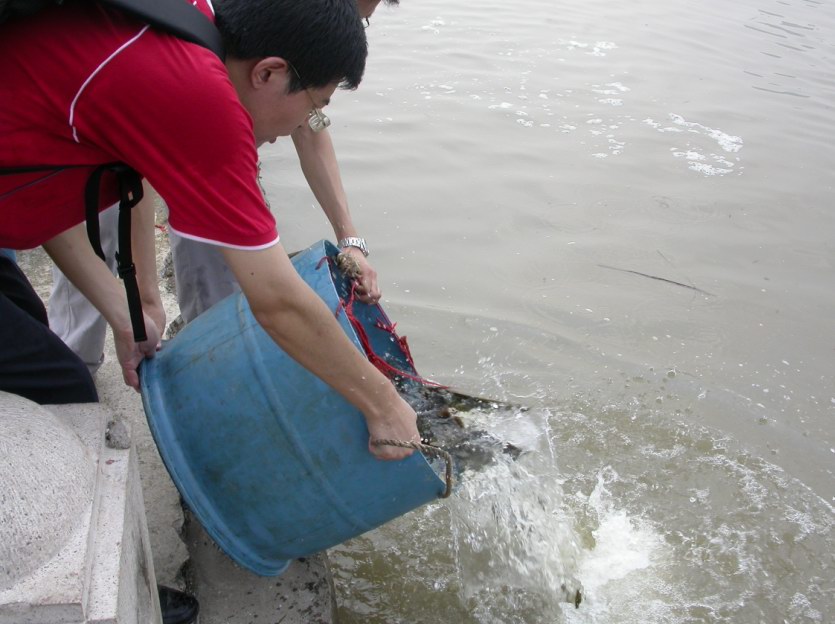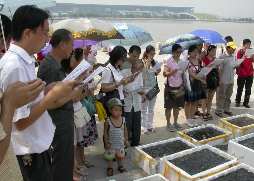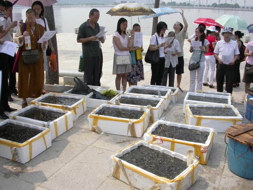 慈光经常去放生的黄沙码头,因为逐渐有其它放生组去放生,广州本地的几大寺院,几大居士团体,都定期或不定期在黄沙放生,慢慢的,有些渔船也闻讯而来,于是慈光最近不在黄沙放生,改在一些新开辟出来的地点,然后将不定期改变放生地点.以期放生活动更加如理如法.