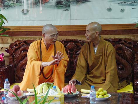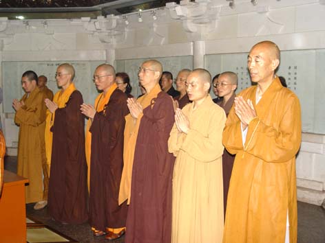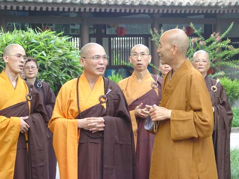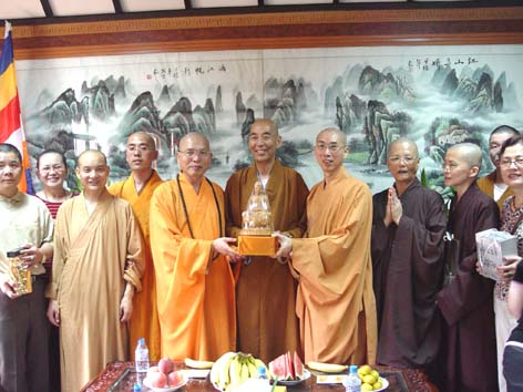 2006年7月13日上午9时,台湾云林县慈光寺导师慈忍法师,住持圆教法师等11人在道伟法师的陪同下来到法门寺礼拜佛指舍利,受到法门寺副监院智超法师的热情接待,双方进行了亲切友好的交谈。 应法门寺佛学院教务长贤空法师的邀请,慈忍法师给佛学院的同学做了一堂精彩的佛法开示,受到同学们的欢迎。 圆教法师很重视人才的培养和广修供养,她和信徒们在法门寺设斋供众和供养常住690套衣服,委托常住代为制作。 道伟法师说,法门寺和珍宝馆的建设很有特色和内含,我很喜欢这个地方,有一种说不出来的感觉。 慈忍法师说,我们第一次来陕西,久仰法门寺道场,看到法门寺有很多年轻学僧,非常欣慰,佛教后继有人,希望大家向学诚大和尚学习,为中国佛教事业做出应有的贡献。 交流结束后,法门寺在风情园设宴招待了台湾法师一行。(图文:鹏飞/毓宁光德) |