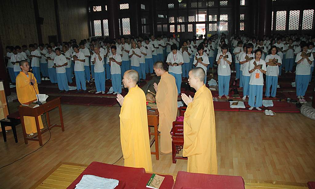 愿文》,最后是三归依及回向。历时一个半小时。营员们诵声朗朗,法喜充满。