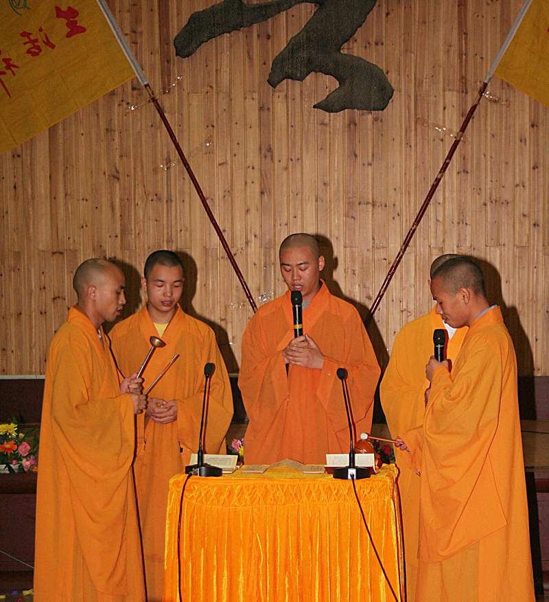 早课。早课的内容依次是《香赞》、《普贤菩萨行愿品》、《三祖僧璨禅师信心铭》、《怡山和尚发