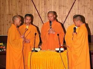 晚上7 :30分,梵乐禅心音乐会在文殊阁举行。隆藏法师带领的合唱团所演唱的三宝歌为本次音