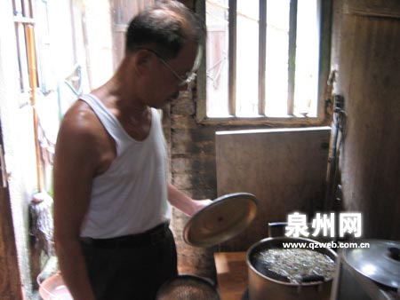 免费奉茶的是老人苏汉民,当记者找到他时,他正在房里忙着烧茶,天气炎热,老苏脸上出了许多汗。