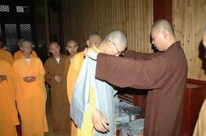 已报名参加短期出家和八关斋戒的营员则于开示之后领到海青,并接受相关仪轨培训。晚上,明