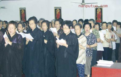 南普陀念佛堂以“持戒念佛”为宗风,以菩萨“悲智行愿”的理念引导信众,广行清净善法。传授八关斋戒别有意义,此是佛陀悲悯在家弟子忙碌无暇修行而方便制定的暂时出家修行之戒法,让在家者过上一日一夜的出家人的清净生活。