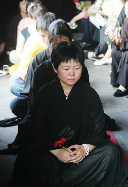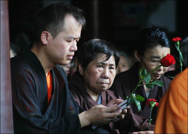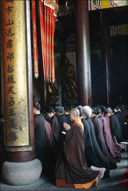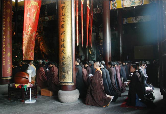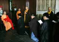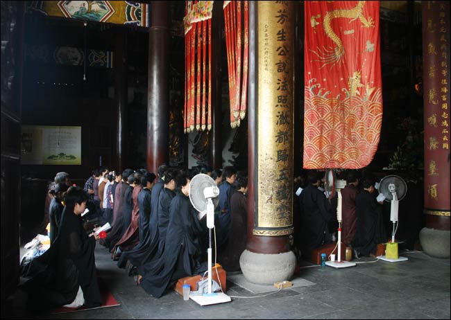 清晨起,大殿内就站满了来自苏州及周边地区的两百多位佛子,随法师们一起拜佛、忏悔,以清净心等待受持八戒的神圣一刻。