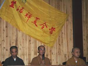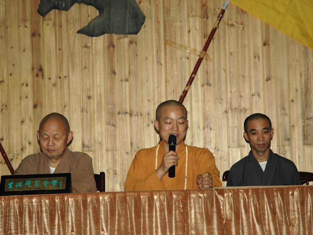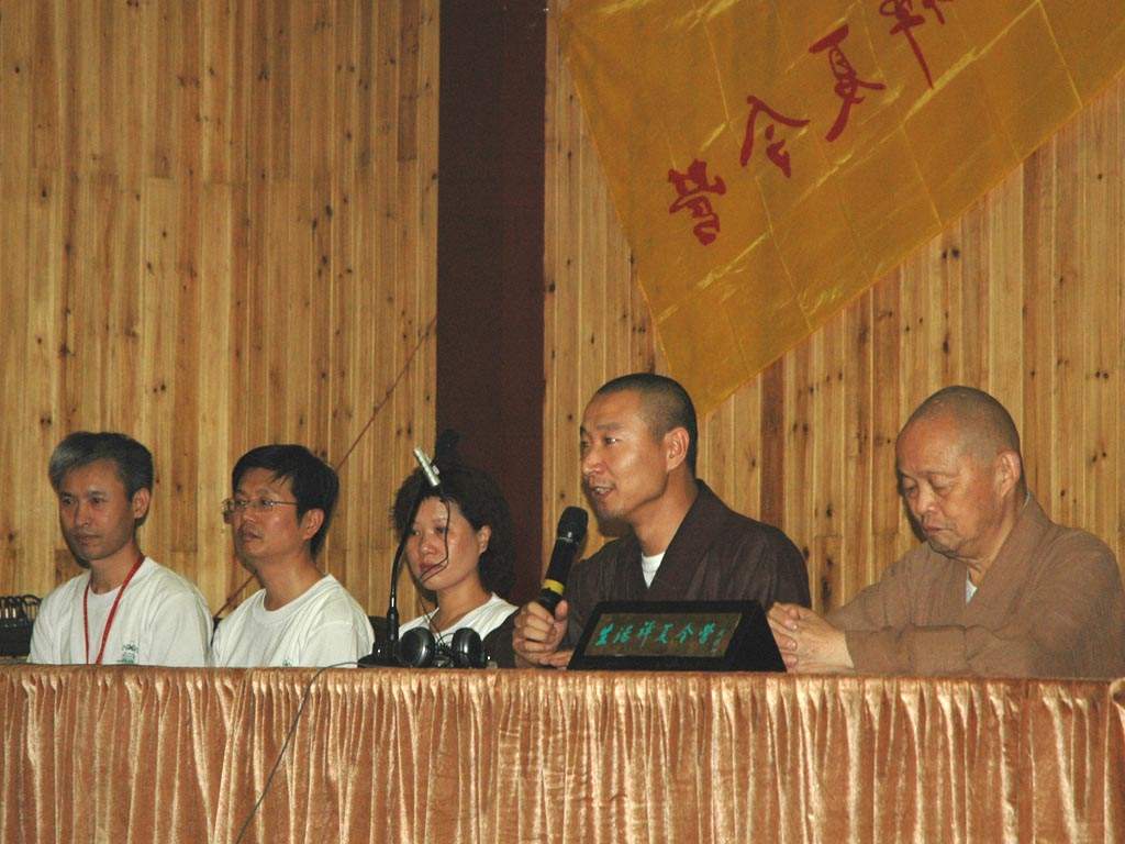 上午,成功的民营钢铁企业家丁立国居士在文殊阁给营员们作了讲演,分享了他十几年的成功经