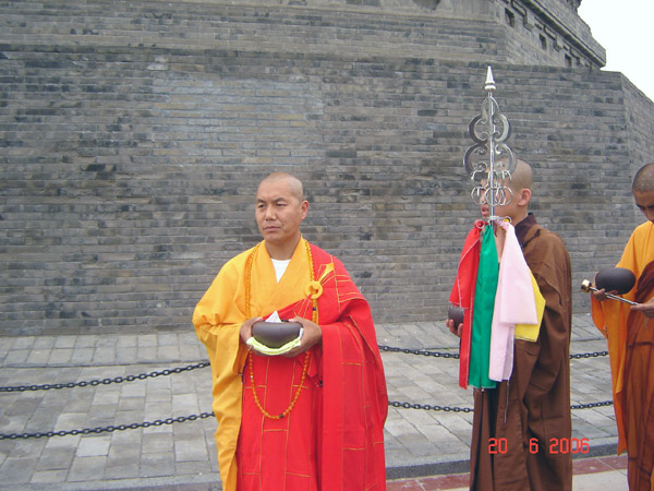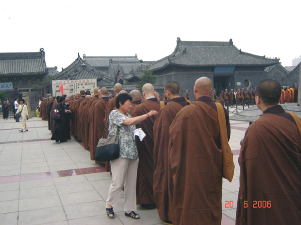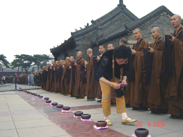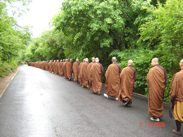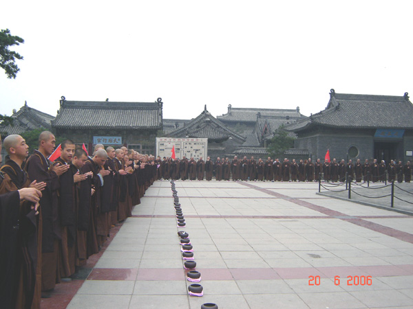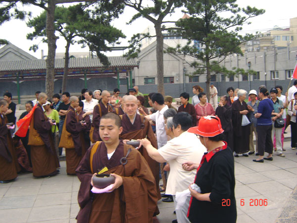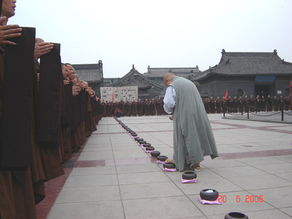 缘起:传菩萨戒前一天,下山剃头,沐浴更衣,拜塔托钵应供.