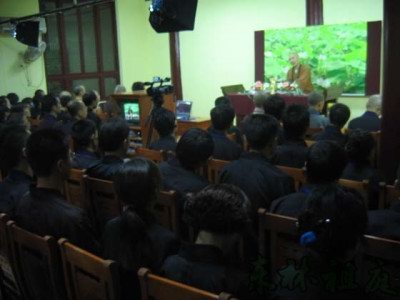 经过3天的寺院生活,8月24日,营员走出东林寺,乘车来到庐山脚下的白鹿洞书院进行参访。白鹿洞书院刘堂鑫老居士向营员们介绍了书院的历史情况。晚上,营员们回到寺院,参加了东林寺每个月初一、十五举行的法师在线答疑活动。