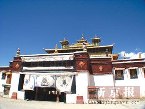 车至桑耶,很远就能看到一片灿烂的金顶。
