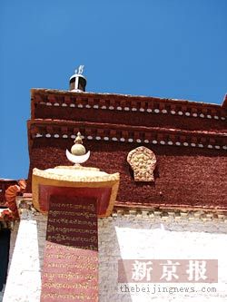 金顶占据了这座大庙最中心的位置,其下便是桑耶寺的核心建筑———乌孜大殿(大雄宝殿)。它最大的特色便是三层建筑分属三种不同风格,因此别名三样寺。最下面一层是按照藏族寺庙样式修建的;中间一层是汉式的经堂,中层门楣上还悬挂着一块匾额,底色墨绿,刻字涂金,其上镌刻着“大千普照”四个汉字,手法苍劲;而第三层则是印度寺庙的风格。独特的样式要在桑耶寺起源上找原因,桑耶寺的建立正是藏、汉、印三种文化合力的结果,建筑史上非常少见。