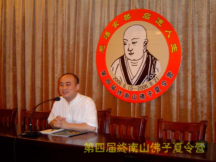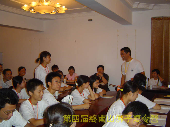 13日晚,宽树法师为大家开示寺院过堂、行堂的仪规.14日晚营员们进行了交流、分组.夏令营总主持田洪纲居士为大家介绍本次夏令营的日程安排.