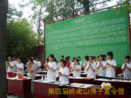 佛子在线报道:8月19日,夏令营进行到第五天。早上九点,在三藏塔院举行抄写玄奘大师翻译经典《般若波罗蜜多心经》 ,开始之前大家怀着感恩的心礼拜玄奘大师塔。心一居士首先给大家介绍了中国书法,然后教大家磨墨,之后营员们开始抄经.赵老师幅临摹王羲之的八尺长的《心经》,作为本次抄经的一等奖奖品。抄经结束后大家一致评出王宝坤营员获得了一等奖,获得到赵老师墨宝。