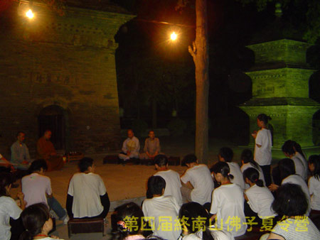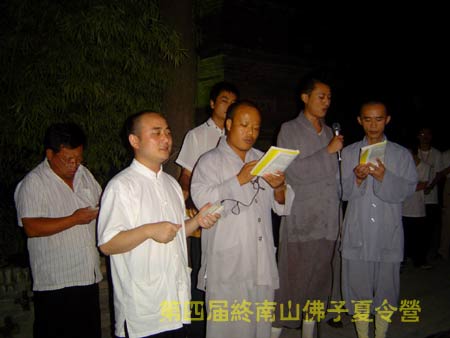 几位法师共同唱《三宝歌》,结束了今晚的普茶。