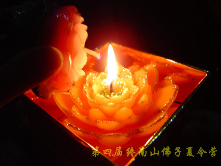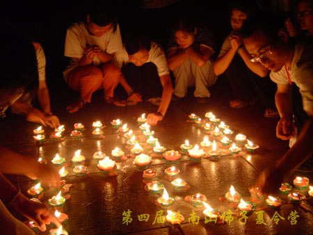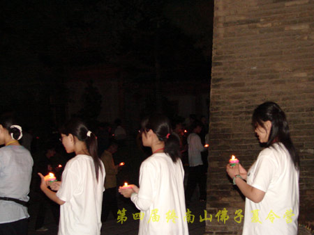 晚上七点半,在兴教寺大雄宝殿举行传灯法会,营员们手捧莲灯,跟随法师到三藏塔下供灯。整个传灯法会在庄严、祥和的氛围下圆满结束。
