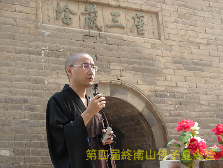 苏州西园寺戒幢佛学研究所的观云法师为大家开示拜塔