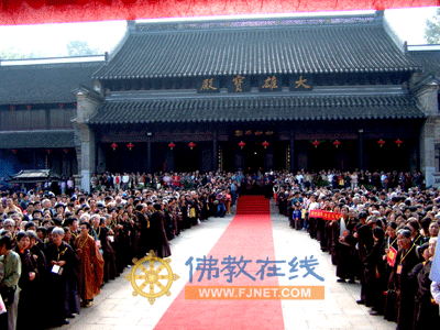 庆典活动由江苏省佛教协会副会长弘法法师主持。新加坡佛教总会前主席隆根长老代表诸山长老发表讲话。隆根长老22岁的时候在宝华山隆昌寺受戒,今天回到宝华山隆昌寺,看到隆昌寺现在的兴旺发达,老法师非常激动、非常高兴、非常赞叹!随后、圣辉法师代表中国佛教协会发表了热情洋溢的贺词。在回忆了宝华山作为“律宗第一名山”的光辉历史后,圣辉法师特别回顾了在赵朴老的亲切关怀和参与下,在茗山长老、慈舟长老等高僧大德和海内外护法居士的辛勤努力下,宝华山隆昌寺又焕发了新的生机。圣辉法师在讲话中期望心平法师和隆昌寺的常住僧众,在各级党和政府、佛教协会的领导下,在大德居士的支持下,发扬与时俱进的精神,高举爱国爱教的旗帜,实践人间佛教思想,切实加强寺院建设和管理,进一步加强道风和学风建设,重视人才建设,健全各项制度,深入贯彻和执行《宗教事务条例》,庄严国土利乐有情,把隆昌寺建设成为一个弘扬戒律注重实修的道场,一个弘法利生的基地,一个爱国爱教与社会主义相适应的典范,一个联系海内外信徒的窗口。为世界和平,祖国富强,人民幸福,为开创佛教事业的新局面做出新的更大的贡献。隆根长老和圣辉长老的讲话获得了与会大众的热烈欢迎。