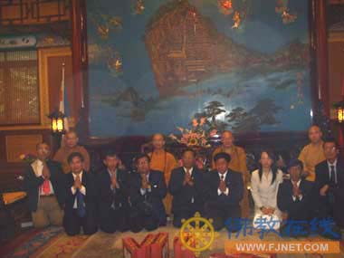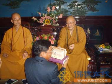 最后,圣辉和学诚两位法师向客人了赠送了礼品并与客人合影留念。