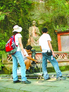 “这是在做什么呢?拍电影?……”8月30日一早,大佛景区里的一批特殊客人引起了游客们的关注。他们或架设摄像专用轨道,或忙着将镜头指向乐山大佛,或在笔记本上作记录,或在监视器前看画面效果,忙得不亦乐乎。据大佛景区工作人员介绍,这是中央电视台“探索·发现”栏目正在拍摄纪录片。