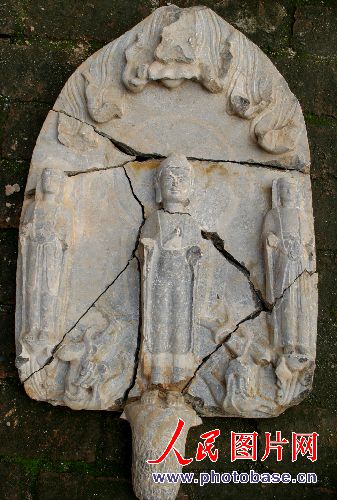 ![]() 9月2日发掘的贴金彩绘一佛二菩萨三尊像石雕 |
