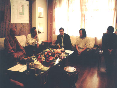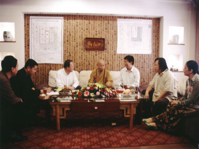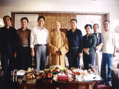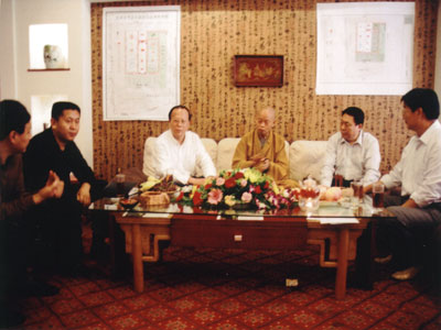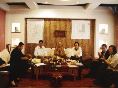 邢台市人民政府市长姜德果,中国佛教协会副会长净慧大和尚,市政协副主席胡朝元,省佛协秘书长肖占军,市民营企业家阎世杰,一起商讨邢台大开元寺建设问题