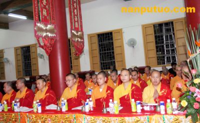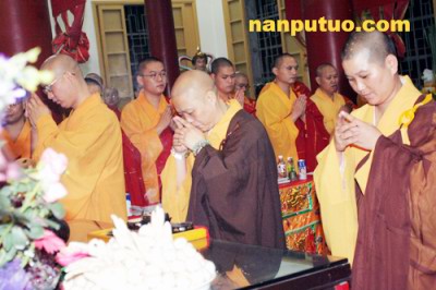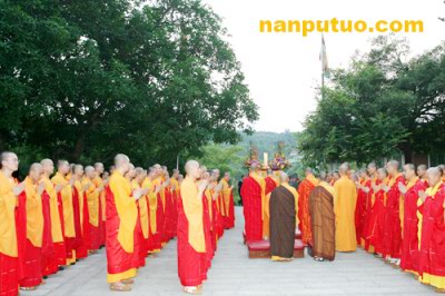 据南普陀在线报道:9月21日下午,闽南佛学院办公室主任净心法师携南普陀七十多位法师来闽院女众部紫竹寺,施放瑜伽焰口一堂。承此庄严殊胜功德,回向世界和平、国泰民安。以及该寺界内乃至十方法界之一切孤魂亡灵离苦得安。