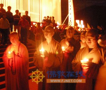 是日夜晚,正觉讲寺还举行了传灯法会,与会者人人手持一盏水晶莲花灯,数千盏烛光一刹时亮起,象征着佛法慧炬永远烁破冥冥黑暗,三宝明灯流芳千古代代相传,慧灯相继,传承无尽。法会庄严,让每一位参与者的心里都有一个共同的体悟:“感恩的日子很幸福,感动的世界很美丽。”