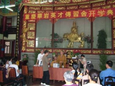 据重庆佛教在线消息:9月16日上午10点,重庆华岩英才传习舍开学典礼在华岩寺般若讲堂隆重举行。参加典礼的有华岩寺方丈道坚法师,朗光法师,萧师荣先生,李正思老师,袁可老师及百多位热爱传统文化的社会各界人士。