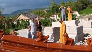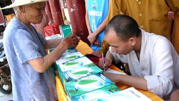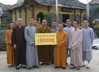 资国寺遭到超强台风“桑美”袭击后,寺院的殿堂、僧舍等建筑毁损十分严重。一方有难,八方支援。近日,柏林禅寺利生法师和鸿山寺贤志法师分别代表各自寺院赴资国寺捐款赈灾,为资国寺的灾后重建贡献力量;联通公司为资国寺灾后重建筹资义卖手机。