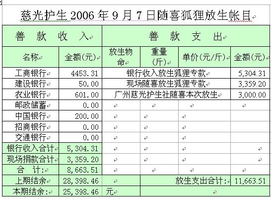 广州慈光护生2006年9月7号随喜狐狸放生总结