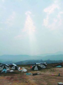 白光投映犹如盘坐高僧 达摩难陀火化天显异象