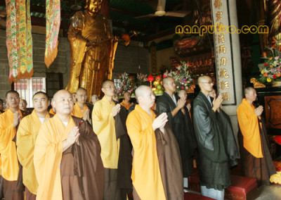 他们在禅堂静参,心心不离“念佛是谁”的话头;同时于念佛堂专念“阿弥陀佛”之圣号,声声相续,无论坐禅还是念佛都体现出佛弟子对佛教的深厚情怀。修行过程中,南普陀寺常住执事、僧众给予了积极地引导与支持,居士们也为此虔诚的护持。