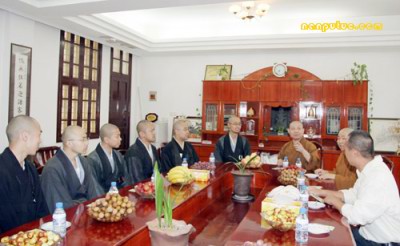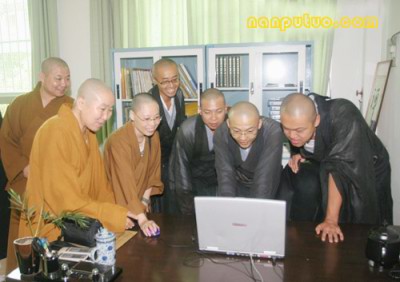 7日上午8时许,日本僧人们前往金榜山紫竹林寺(闽院女众部),监院法源法师、副监院悟源法师热情接待他们并于客堂座谈。之后参观了学院女众部教学楼、图书馆、南普陀寺网站等。